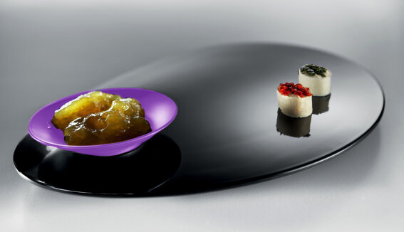 Size:  base 30,5 x 21 - h 3 cm - bowl Ø 9 x 12 - h 1,8 cm